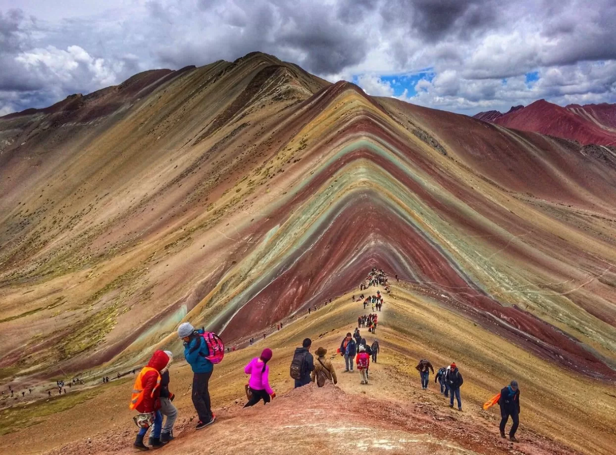 Durante el recorrido, podremos admirar paisajes sorprendentes, ver llamas y alpacas acompañadas de sus pastores vestidos con trajes típicos llenos de colores vibrantes. Desde la distancia, el imponente nevado Ausangate se destacará en el horizonte. Al llegar a la cima, quedaremos asombrados por los inconfundibles colores de la montaña, con tiempo suficiente para capturar las mejores imágenes.